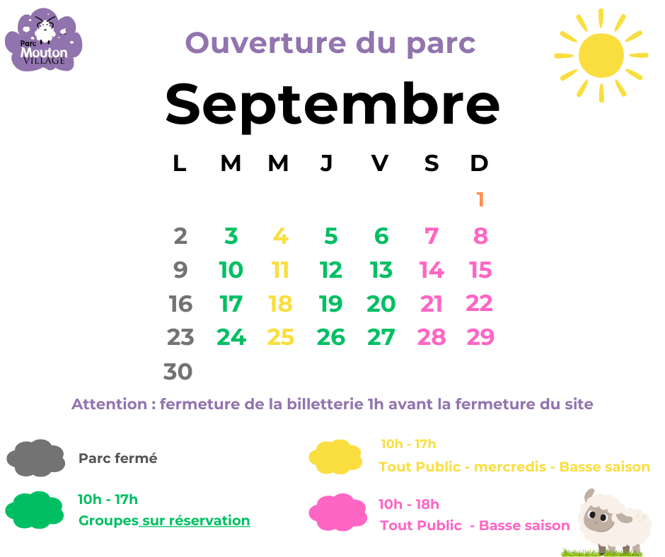 Les vacances arrivent à leur fin... Le parc Mouton Village retrouve ses horaires habituels et vous accueille :