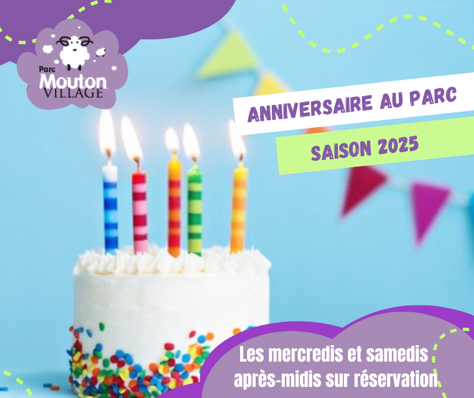 🎂 Mouton Village vous propose une formule "Anniversaire au parc" les mercredis et samedis après-midi.
